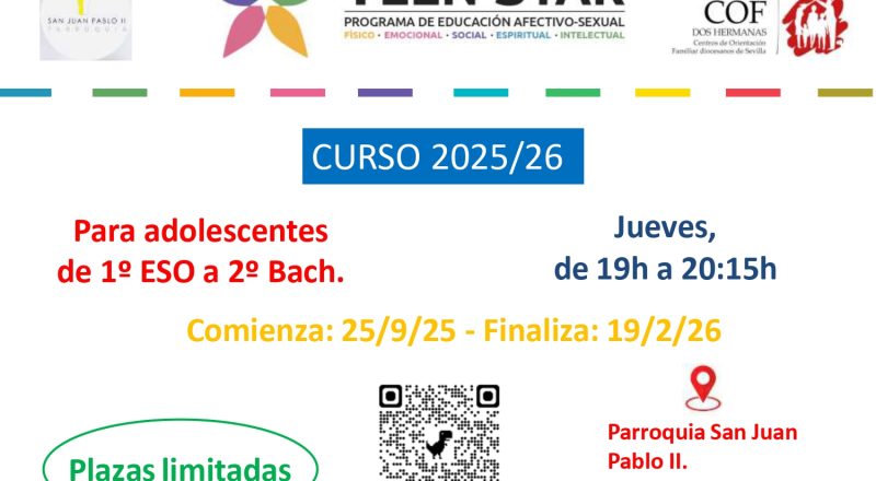 📢 ¡Nuevo curso de *Teen Star* en Sevilla! 💫 🗓 *Fechas:* 14,15, 1621,22 y 23 de noviembre. 📍 *Lugar:* Sevilla (parroquia San Sebastián)❤️ *Programa de […]