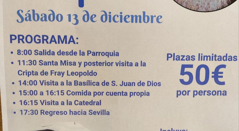 El sábado, 13 de diciembre, la parroquia Nuestra Señora del Mar organiza una peregrinación a la Cripta de Fray Leopoldo en Granada. Además, se incluye […]