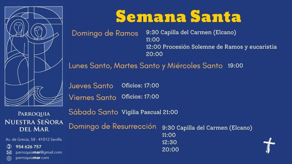 Horarios durante Semana Santa Horarios Noticiasmarzo 26, 2026 luisjnet Comparte esto:Tweet Descubre más desde Parroquia Nuestra Señora del Mar (Sevilla) Suscríbete y recibe las últimas entradas en tu correo electrónico. Escribe tu correo electrónico… Suscribirse