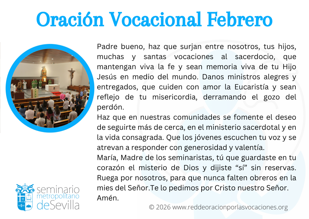 Oración vocacional de febrero Archidiocesis Noticias Oraciónfebrero 2, 2026febrero 2, 2026 luisjnet Comparte esto:Tweet Descubre más desde Parroquia Nuestra Señora del Mar (Sevilla) Suscríbete y recibe las últimas entradas en tu correo electrónico. Escribe tu correo electrónico… Suscribirse