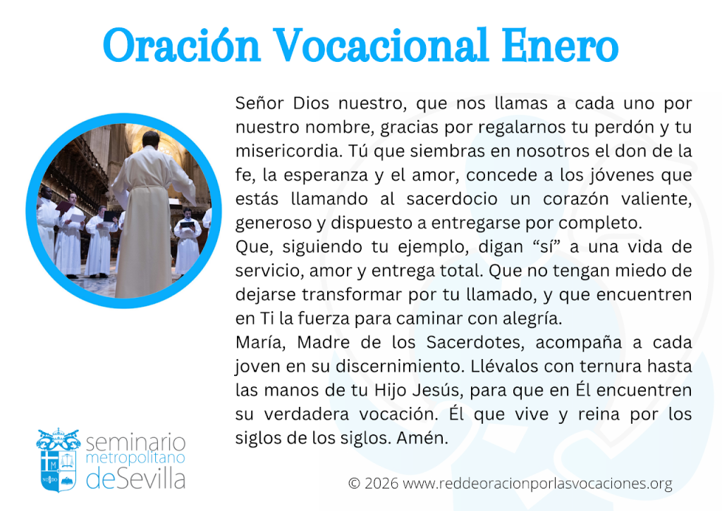 Oración vocacional enero Archidiocesis Noticias Oraciónenero 1, 2026 luisjnet Comparte esto:Tweet Descubre más desde Parroquia Nuestra Señora del Mar (Sevilla) Suscríbete y recibe las últimas entradas en tu correo electrónico. Escribe tu correo electrónico… Suscribirse