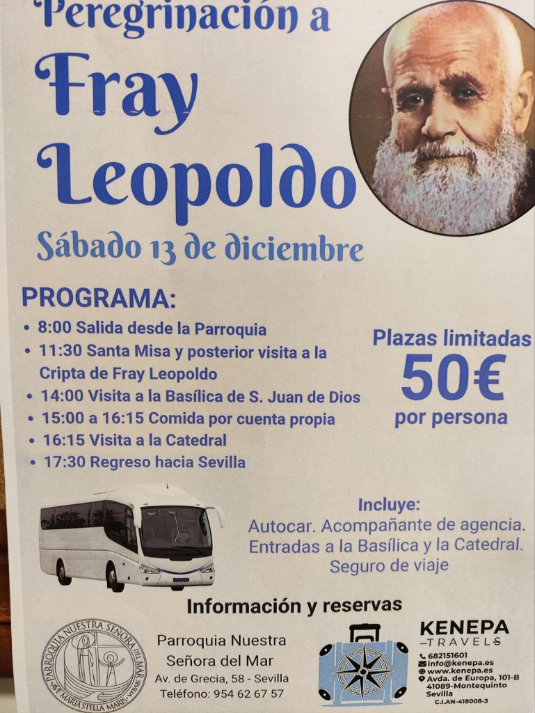 El sábado, 13 de diciembre, la parroquia Nuestra Señora del Mar organiza una peregrinación a la Cripta de Fray Leopoldo en Granada.